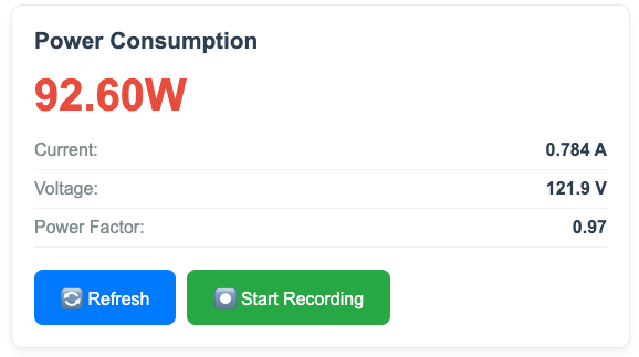 Power consumption reveals an interesting profile shaped by the factory power limits. Idle draw of approximately 20W matches the i9-11900H system, making it equally suitable for 24/7 operation, roughly $2-3 per month in electricity at typical residential rates for always-on use.