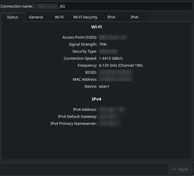 The fan driver wasn't my only hardware fix. The W1's MediaTek MT7922 WiFi 6E adapter refused to connect to 6GHz networks — not because of a hardware limitation, but because the Linux wireless-regdb flags all US 6GHz channels as NO-IR (no initiate radiation). The adapter could hear my router's 6GHz beacons but wasn't allowed to respond. The fix was a one-line change to a regulatory database text file: remove NO-IR, rebuild the binary with db2fw.py, and reload the driver. Instant 6GHz at 160 MHz channel width and over 1 Gbps throughput.