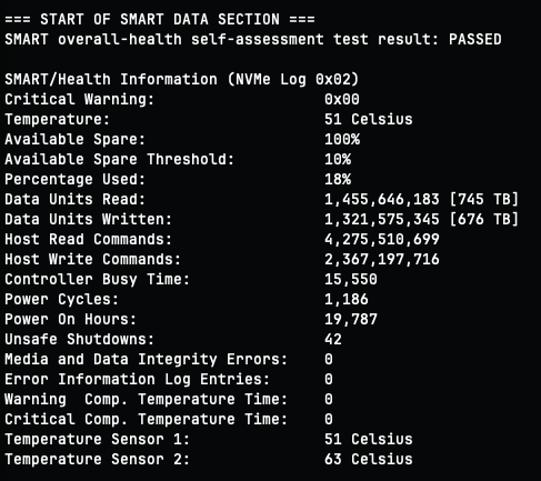 I am using my Samsung 980 Pro 2TB PCIe 4.0 SSD installed in previously reviewed Lekuo NVMe USB4 enclosure. Here’s the condition of the disk, for which has certainly seen some action.