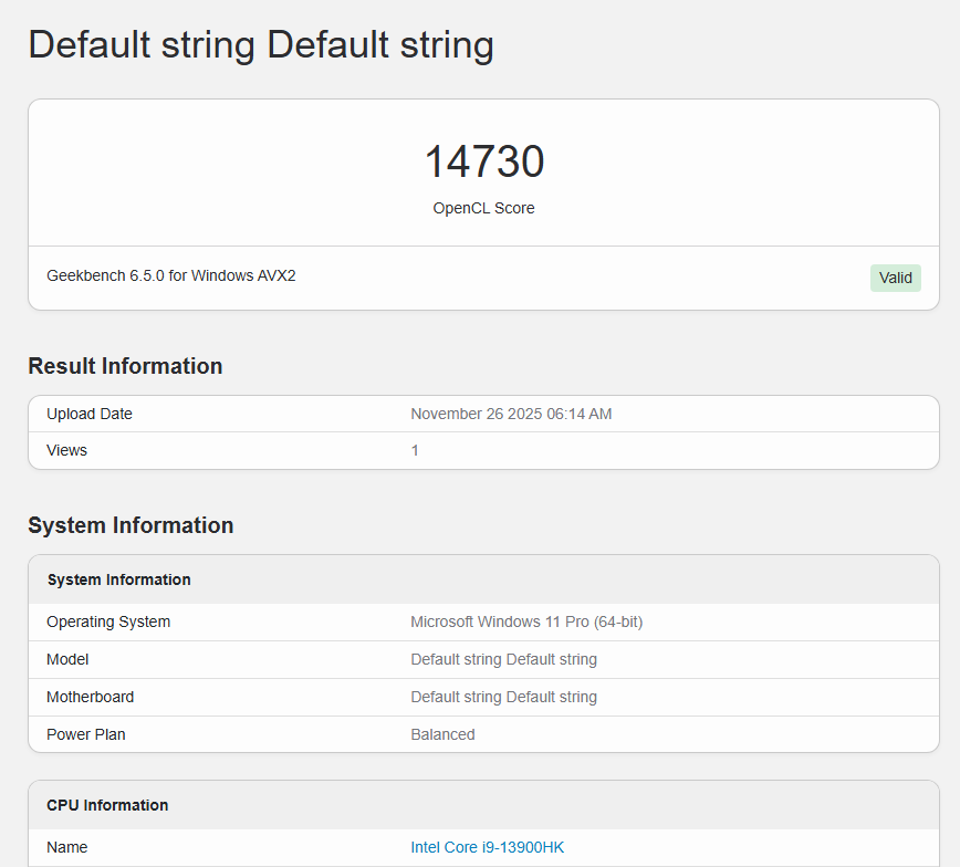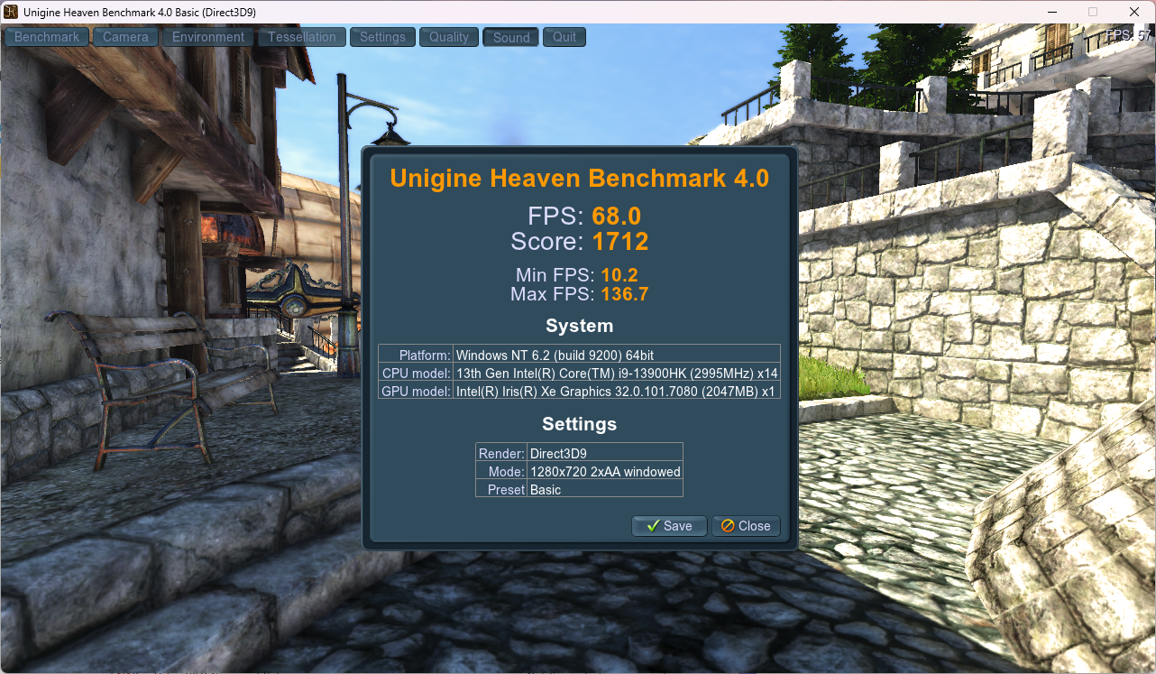 The GPU benchmark results make this crystal clear. A Geekbench 6 OpenCL score of 14730 and Heaven benchmark results of 68 fps on basic settings (dropping to just 15.6 fps on extreme) reveal integrated graphics doing exactly what integrated graphics do: struggling with anything beyond basic tasks.