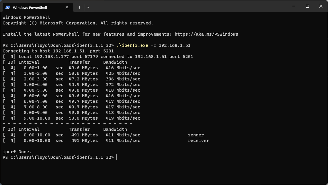 For wireless connectivity, the system includes WiFi 6E via a MediaTek MT7922 module. In realistic testing that’s about 10 ft away from my Ubiquiti Unifi Dream Router 7, WiFi speeds reached 411 Mbits/sec, which is functional but somewhat disappointing given WiFi 6E's theoretical capabilities. In ideal conditions with a quality router, WiFi 6E should deliver significantly faster speeds. That said, for a homelab or server scenario, you'll likely want to use the wired 2.5GbE connection anyway for reliability and consistent performance. The WiFi is perfectly adequate for initial setup or situations where running ethernet isn't practical.